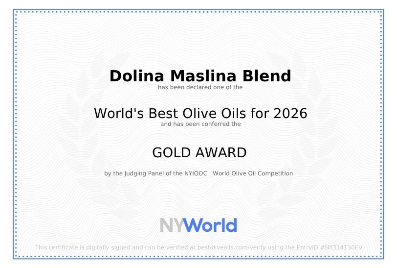 Dvije zlatne medalje ulje je osvojilo u New Yorku - NYIOOC i Japanu (The OLIVE JAPAN International Extra Virgin Olive Oil Competition) 2021. godine. Ova natjecanja pokazuju svjetske i vodeće uljare te daju potvrdu o visokoj kvaliteti ulja detaljnim analizama. Ponovno smo opravdali svjetsku kvalitetu i osvojili NYIOOC 2025. godine.